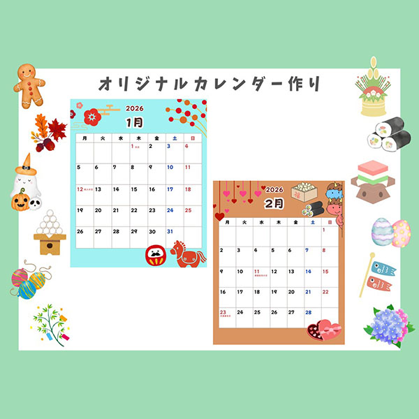 カレンダーに野菜などのシールを貼ったり絵をかいてオリジナルの食育カレンダーを作ります。